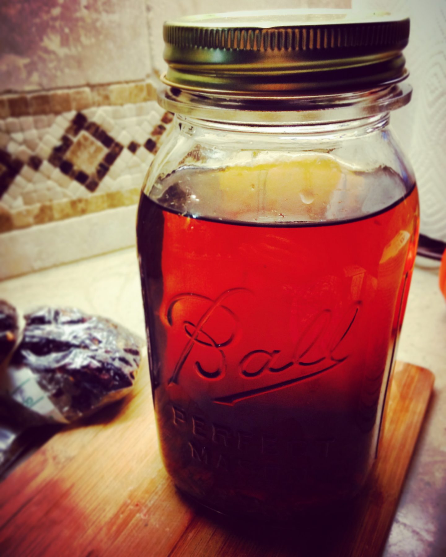 1. Heat water and bring to boil. While water is boiling, pack 1/3 of jar with your herbs of choice. *You do not have to use them all. You can choose your favorites or rotate them. If you only have tea bags, that’s okay too. Just soak them overnight for a potent beauty elixir to be consumed in the morning.